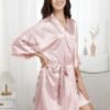 One size: mid-thigh length-34.5inch; chest-49.5inch; 3/4-length sleeves-11inch.Kimono robe design, suitable for most women with size from 0-12, height from 4’11” to 5’7″ and weight from 90 to 165 pounds.