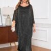 The video showcases the product in use.The video guides you through product setup.The video compares multiple products.The video shows the product being unpacked. CYCLAMEN Plus Size Sparkly Formal Dress Merchant Video