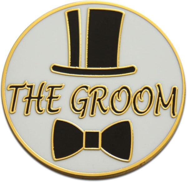 Each metal pin in our 1-piece set is enamel-baked in vibrant colors. This results in a smooth, even face that won’t peel, crack or chip. To ensure that your pins remain close to your heart, each one comes with its own clutch backing to hold it securely in place. You receive 1 Groom pin. Wear them one-at-a-time or all at once as flair on a vest or sash; or share them with family and co-workers and show solidarity for the wedding & marriage Universe.