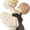 Adorned with a beautiful headband braid, a white rose Barrette and a breathtaking gown and veil, this happy bride gazes soulfully into the eyes of her new husband as he joyfully lifts her up with love. Your favorite couple will appreciate this thoughtful gift as they relive the happiness and romance of the day they said “I do” for years to come. Makes a wonderful wedding or anniversary cake topper. Give this uniquely romantic gift to celebrate a wedding or an anniversary. Meticulously sculpted in bisque porcelain and expertly hand painted. Approximately 7H x 5.25W x 3.75d inches
